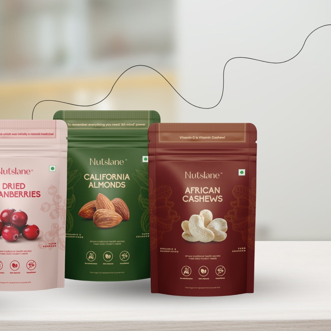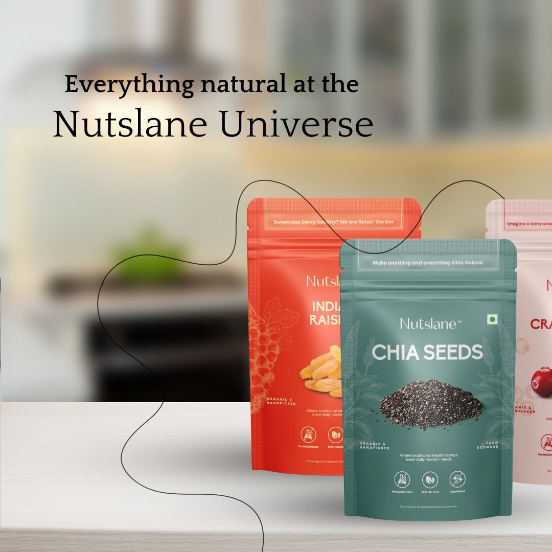 Nutslane blends heritage and innovation to craft a luxurious snacking experience. Rooted in traditional recipes, our gourmet collection reimagines premium nuts and dried fruits with modern sophistication. From Mint Foxnuts to Shahi Paan Raisins, each creation fuses ancient wisdom with contemporary taste. Reviving the nutritional legacy of nuts, Nutslane offers wholesome, flavorful alternatives to processed snacks.